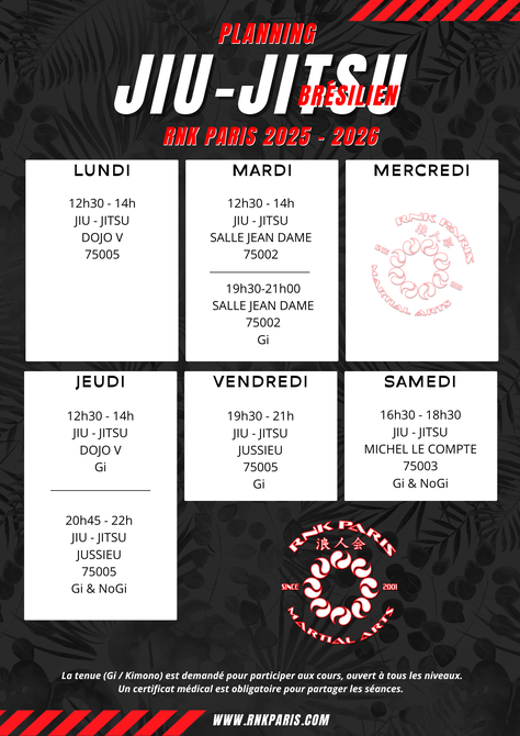 En rejoignant le RNK Paris, vous aurez l'opportunité de vous entraîner avec des instructeurs hautement qualifiés et expérimentés au jjb, qui vous guideront tout au long de votre parcours au